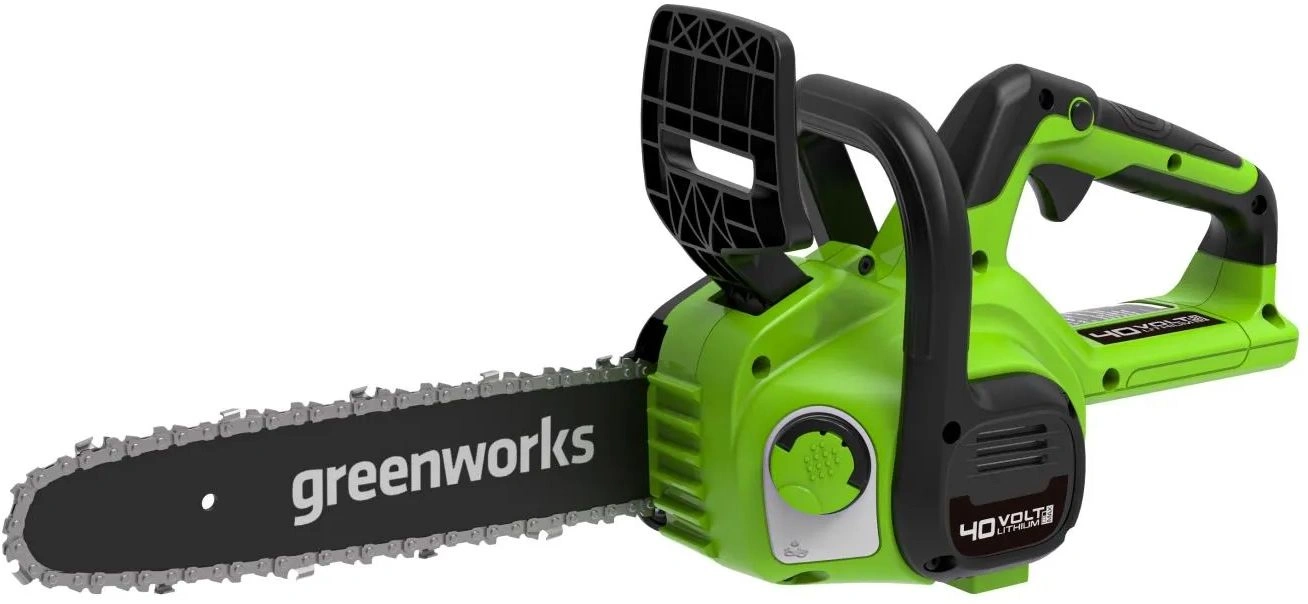 Цепная аккумуляторная пила Greenworks G40CS30II 40V (артикул 2007807) - небольшая, легкая (всего 2,74 кг.) садовая пила. Благодаря ее компактным размерам она легко помещается в багажнике автомобиля или даже в рюкзаке. Это отличный выбор для подрезки толстого кустарника или сучков, пиления бревен
