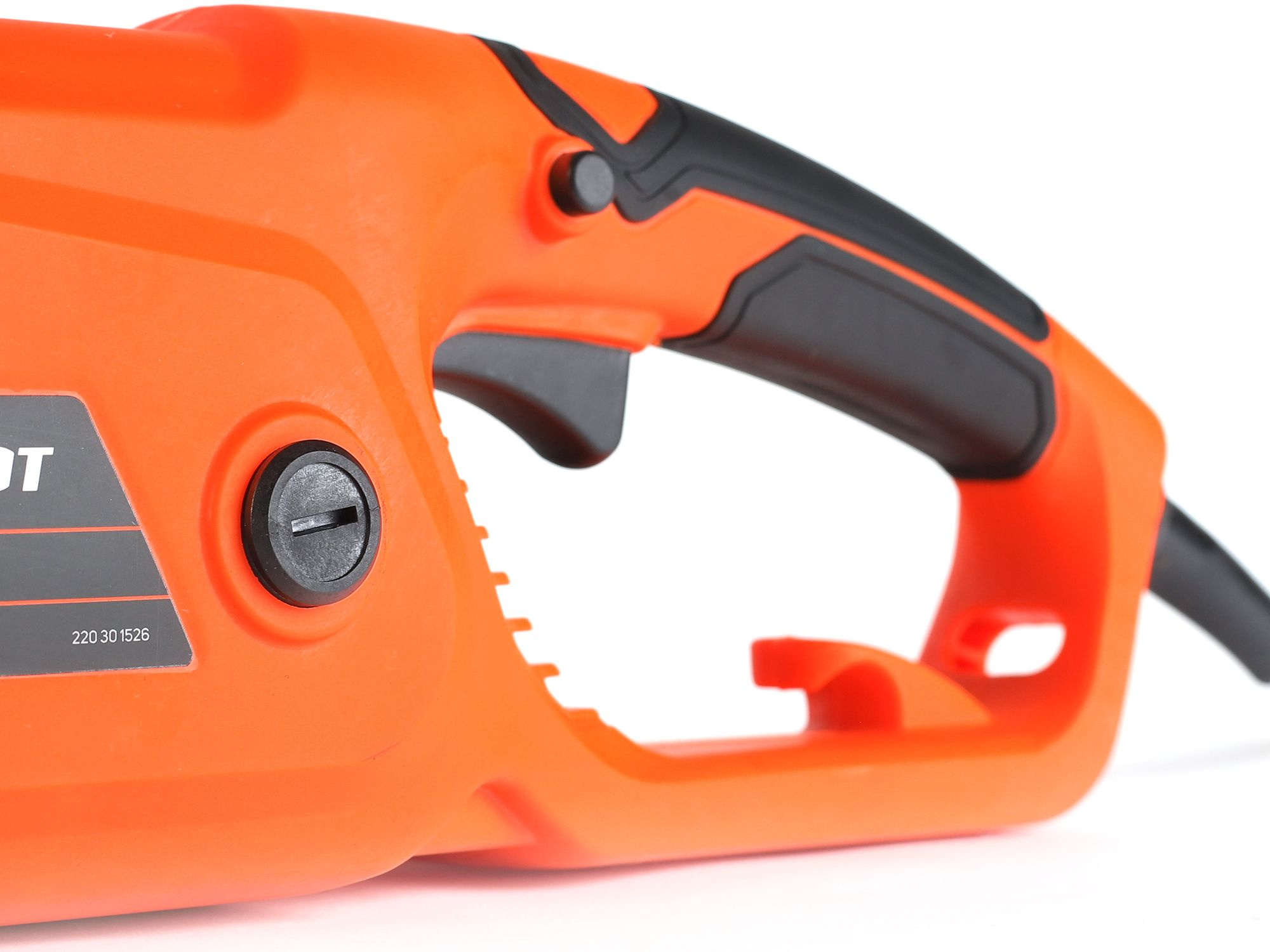| Особенности | Рычаг инерционного тормоза - экстренное торможение пильной цепи в случае её отскока, предусмотрена скоба крепления сетевого кабеля |