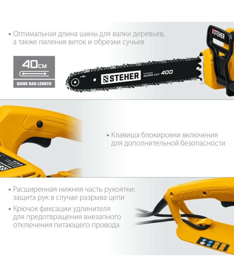 Пила цепная электрическая STEHER ES-2040 2000 Вт, 40 см шина