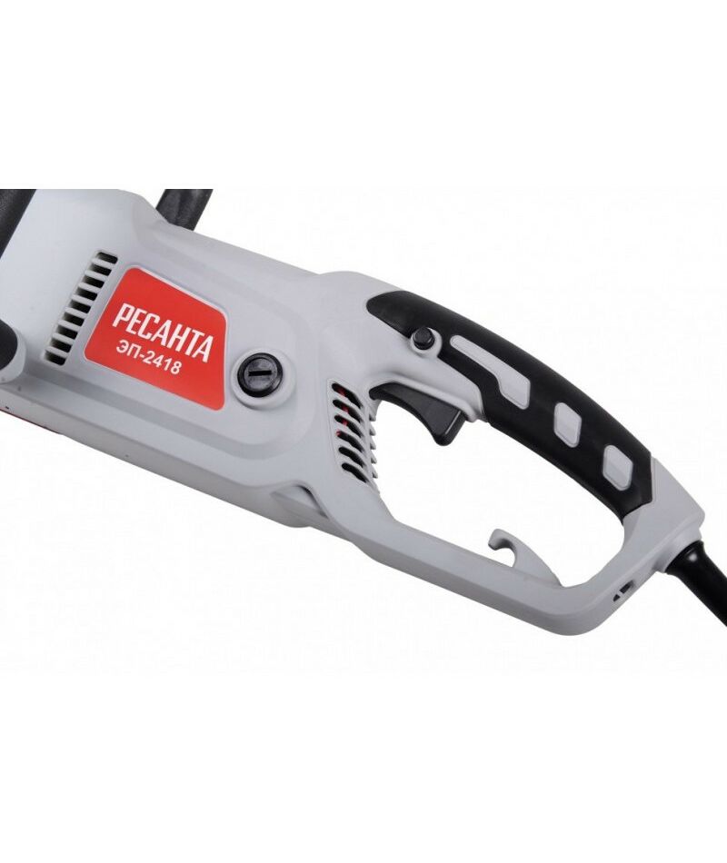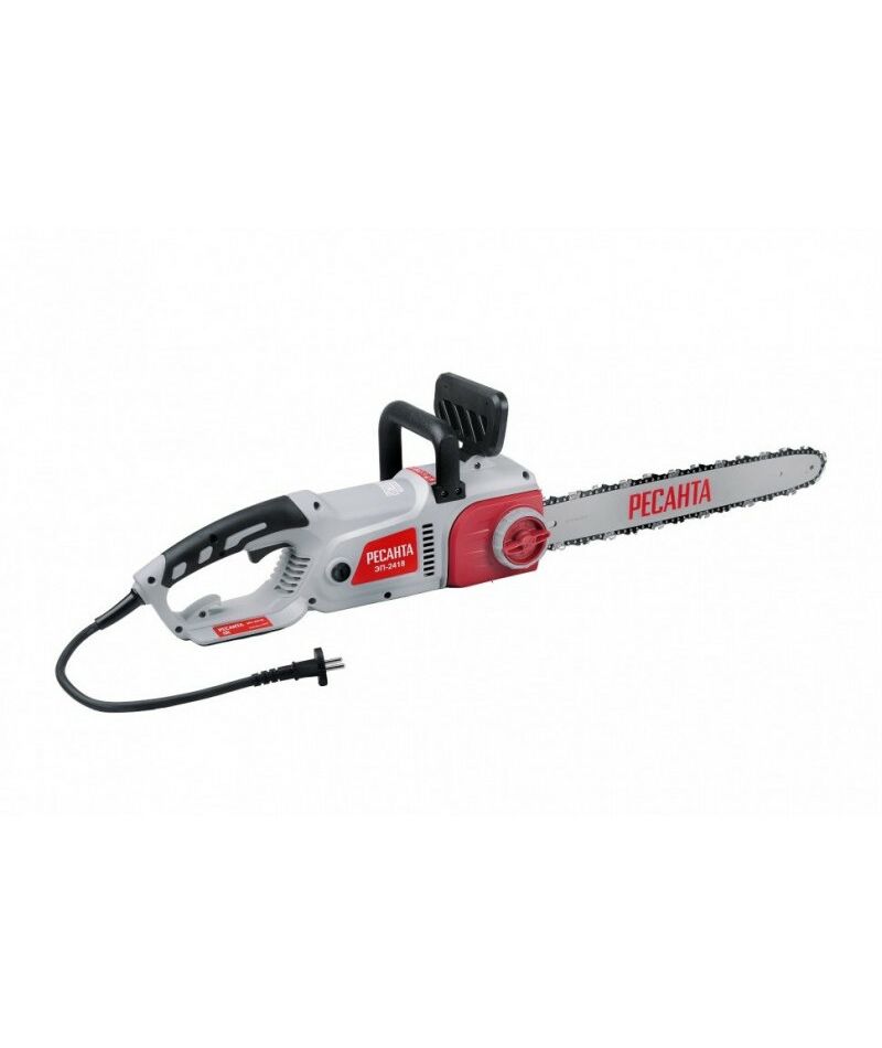 - Электропила Ресанта ЭП-2418 является самым мощным инструментом в линейке бытовых пил немецкого производителя. Аппарат служит для лёгких и средних работ: распиловка бревен, валка садовых деревьев, обрезка сучьев. Благодаря обрезиненной рукоятке держать такой агрегат в руках удобно и комфортно. Привод цепи осуществляется за счет электродвигателя, который работает от сети переменного тока 220В.