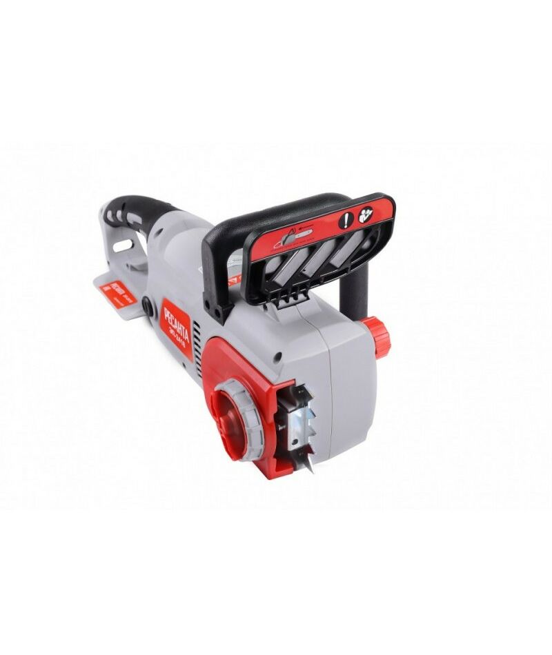 - Надежное удержание. Удобная задняя рукоятка небольшого размера с пусковым курком жестко сидит в руке, что способствует надежному удержанию электропилы.