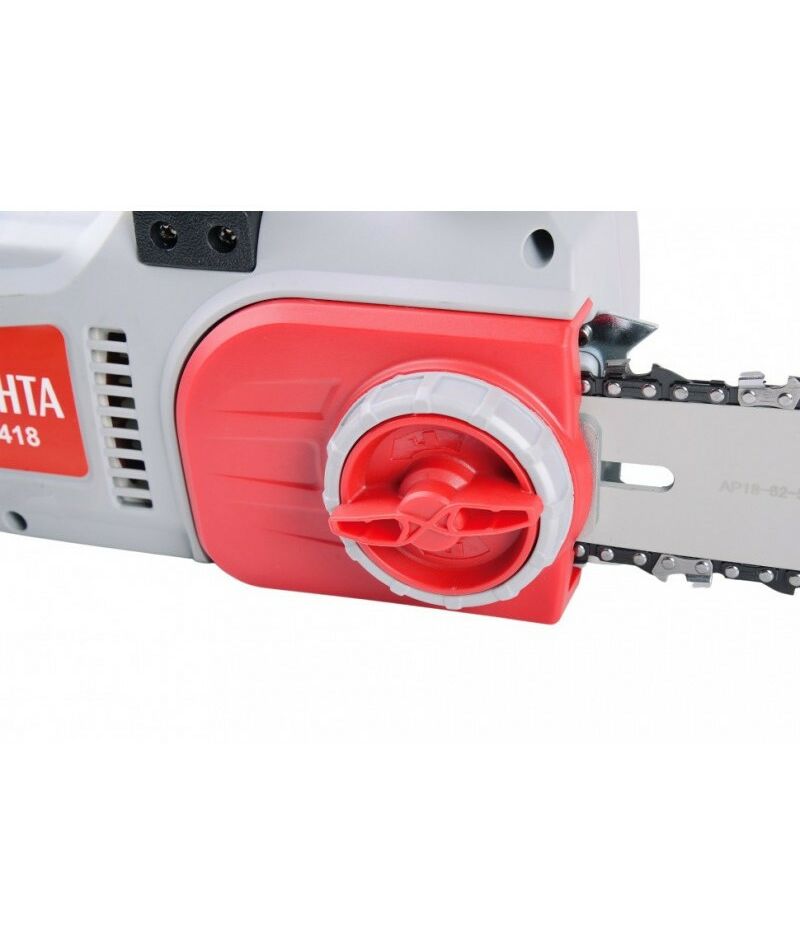 - Отличительными особенностями электропилы Ресанта являются простота и удобство в работе, ведь она не требует заправки топливом и работает от сети 220В. Также стоит отметить низкий уровень шума, создаваемый при работе, а также полное отсутствие выхлопных газов. Это означает, что вы можете использовать пилу не только на улице, но и в помещении при ремонтных и строительных работах. Вы можете легко регулировать натяжение цепи с помощью винта, расположенного на корпусе справа. К характеристикам, обеспечивающим комфортное пользование инструментом, также можно отнести автоматическую смазку цепи. Чтобы вы смогли определить уровень смазки для цепи, в корпусе есть смотровое окошко с делениями. Единственная особенность - это недостаточная мобильность, ведь пользоваться инструментом можно только в непосредственной близости от розетки переменного тока 220В. Этот легко исправить, используя переноску (с кабелем подходящего сечения!) или бензогенератор Ресанта. Для электропилы ЭП-2418 подойдут цепи со следующими параметрами: количество звеньев 63, шаг цепи 3/8, толщина ведущего звена 1.3, шина 181E.