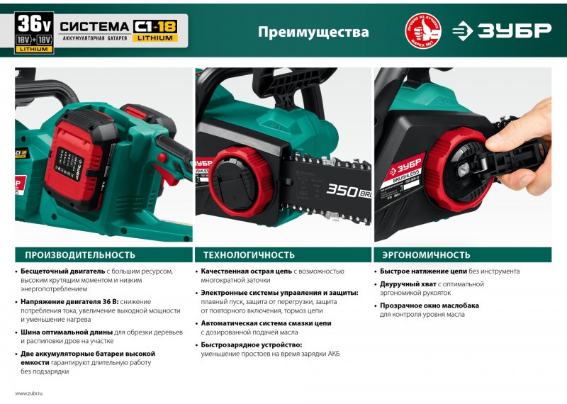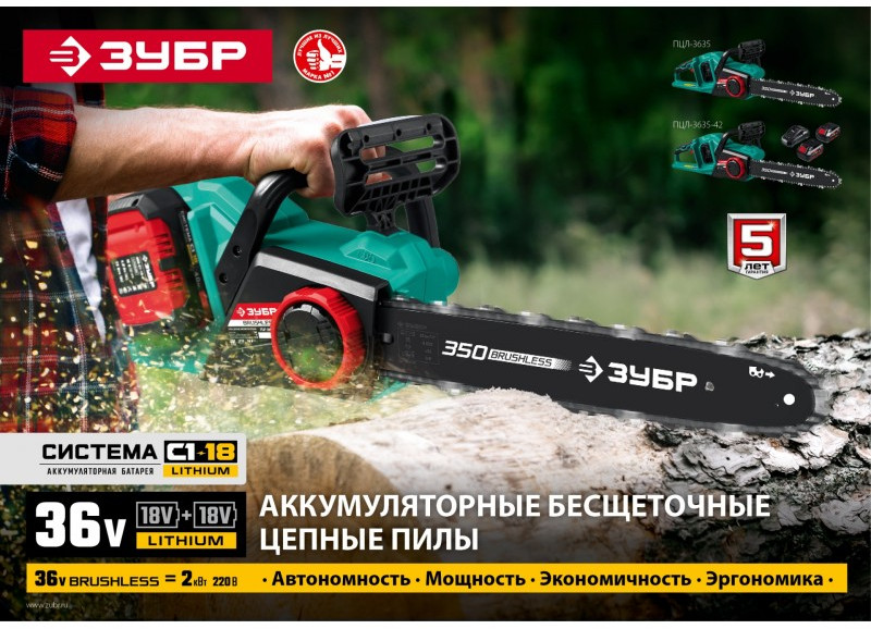 Бесщеточная пила цепная Зубр ПЦЛ-3635 36В, без АКБ