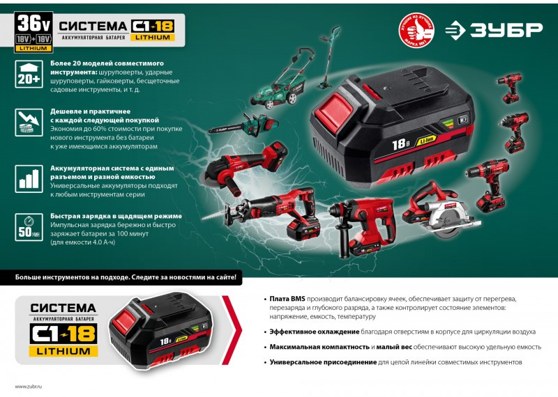 - Изделие совместимо с батареями единой аккумуляторной системы С1-18В