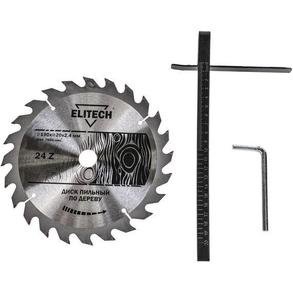 | Комплект поставки | Циркулярная пила, пильный диск 190х20х2,4 мм. (24 зуба), упор параллельный, ключ, паспорт. |