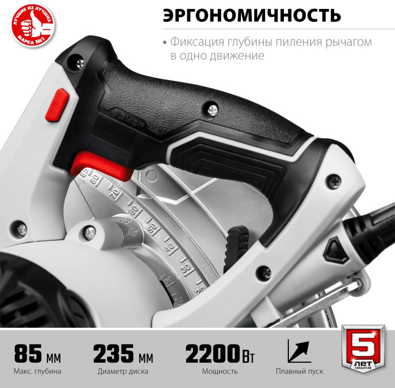 Пила дисковая Зубр ПД-85 90°-85 мм, диск 235 мм, 2200 Вт