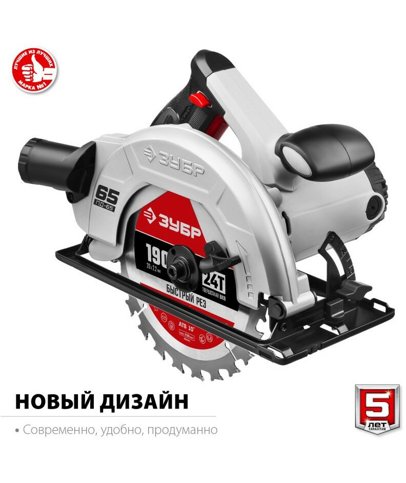 Пила дисковая Зубр ПД-65 90°-65 мм, диск 190 мм, 1600 Вт