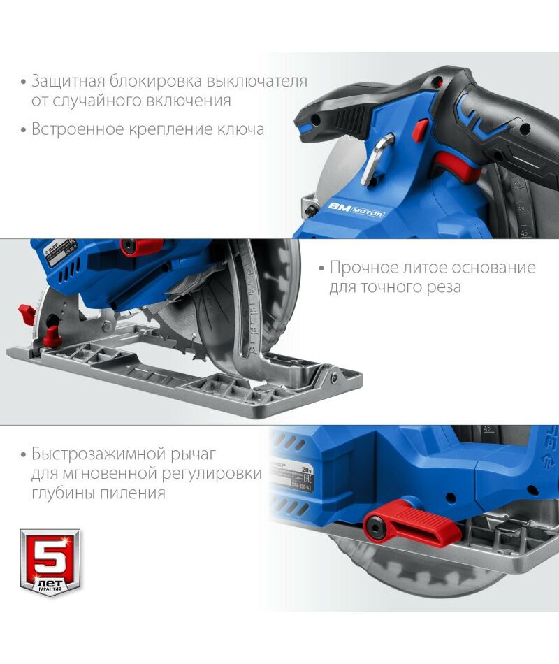 - Бесступенчатая регулировка глубины и угла пиления с удобными шкалами для точных работ