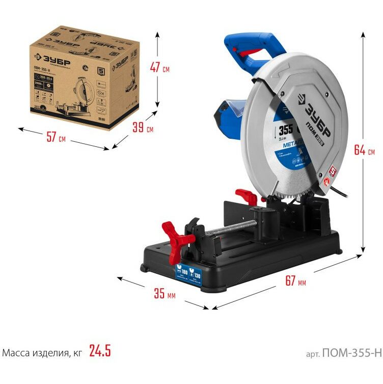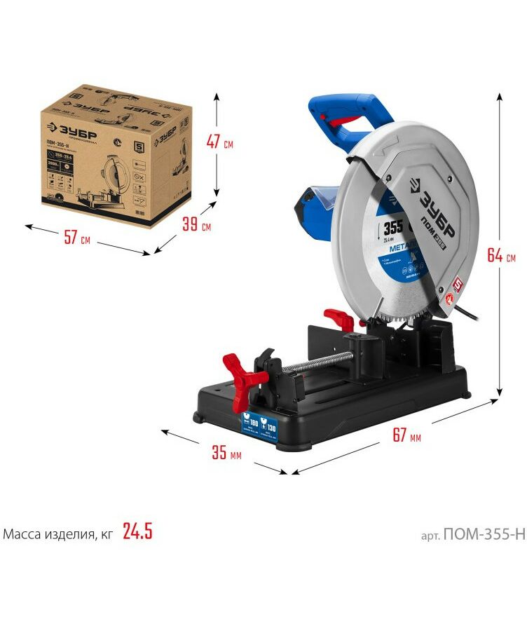 Монтажная пила (отрезная) Зубр Профессионал ПОМ-355-Н 355 мм, 2000 Вт, с пильным диском