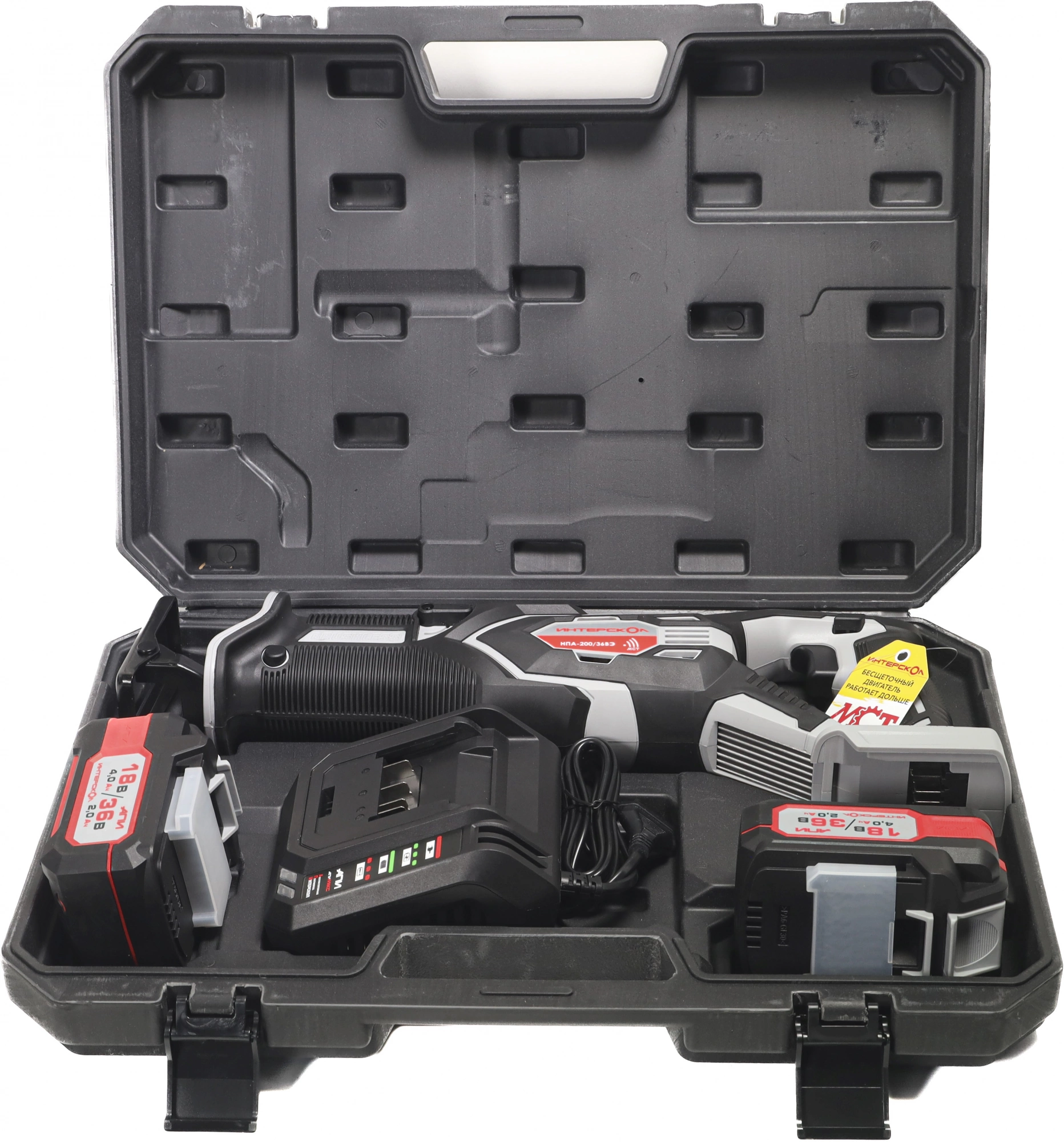 | Комплект поставки | Пила сабельная аккумуляторная, полотно по дереву, полотно по металлу, коробка, АКБ - 2 шт., ЗУ. |