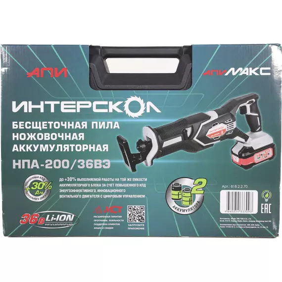 Сабельная пила аккумуляторная Интерскол НПА-200/36В 3000ход/мин ДА [833.2.2.70]