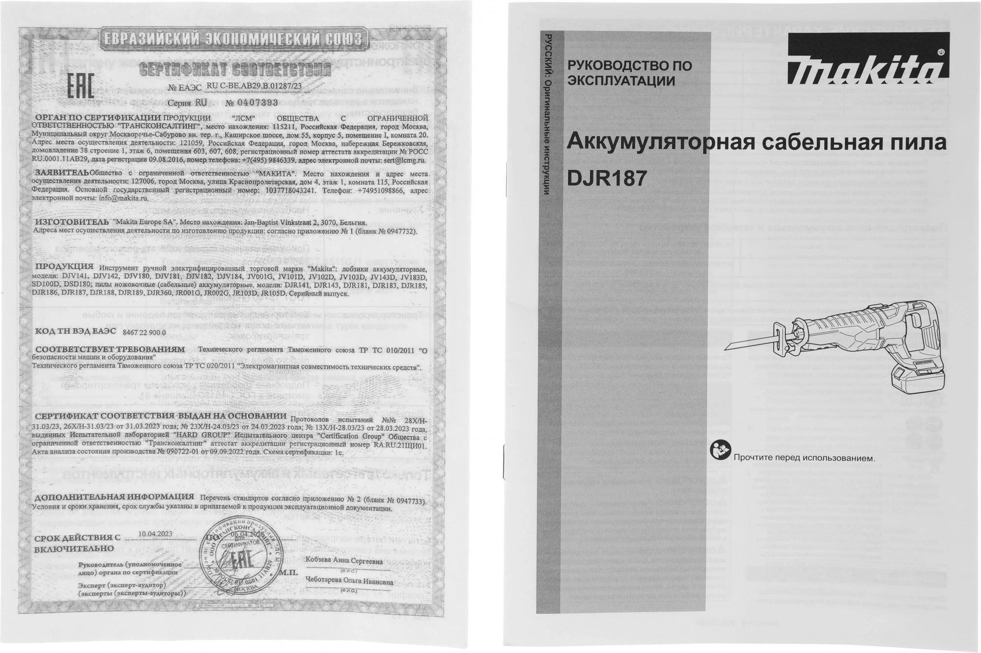 Сабельная пила аккумуляторная Makita DJR187Z 3000ход/мин