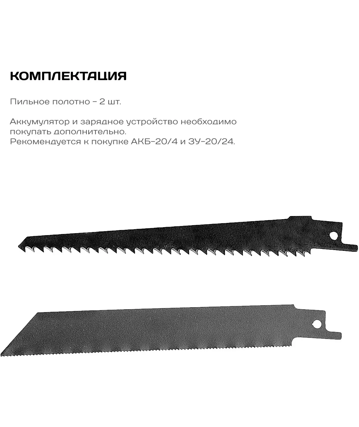 | Комплект поставки | Сабельная пила, пильное полотно - 2 шт. |