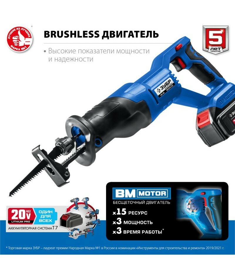 Пила сабельная Зубр SPB-180-41 Профессионал 20В, 1 АКБ (4Ач), бесщеточная