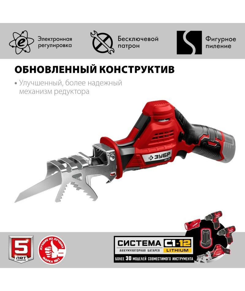 Пила сабельная Зубр СПЛ-125 12В, без АКБ, в коробке