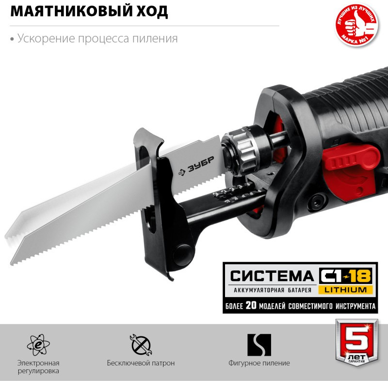 Пила сабельная Зубр СПЛ-185-41 18В, 1 АКБ (4Ач), в коробке