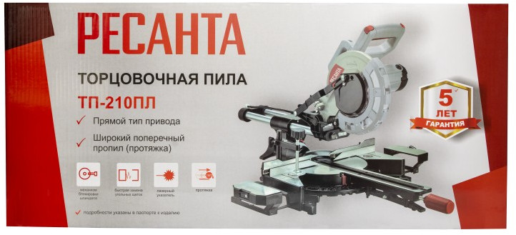 Торцовочная пила РЕСАНТА ТП-210ПЛ 1800 Вт, 5000 об/мин, диск 210 мм, лазер, протяжка