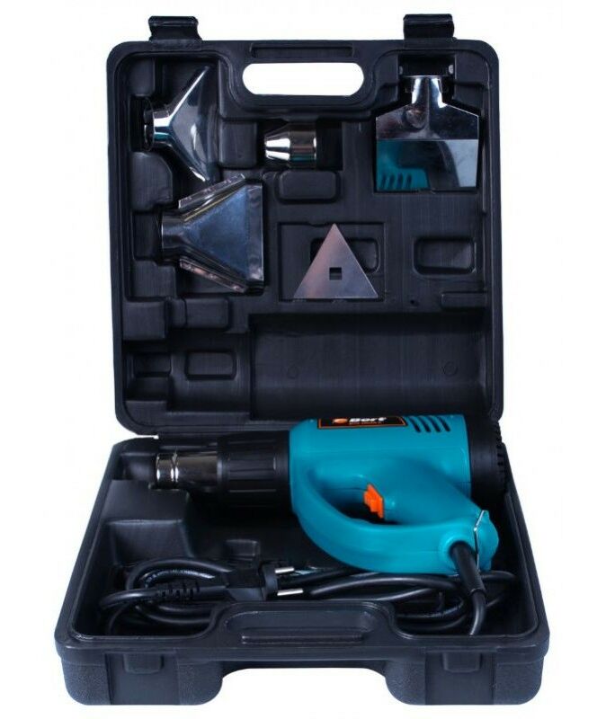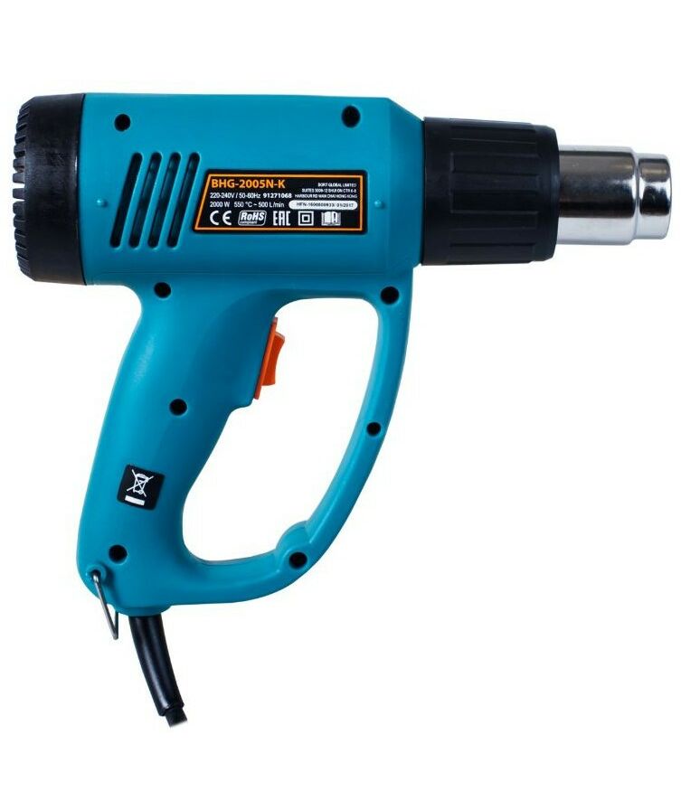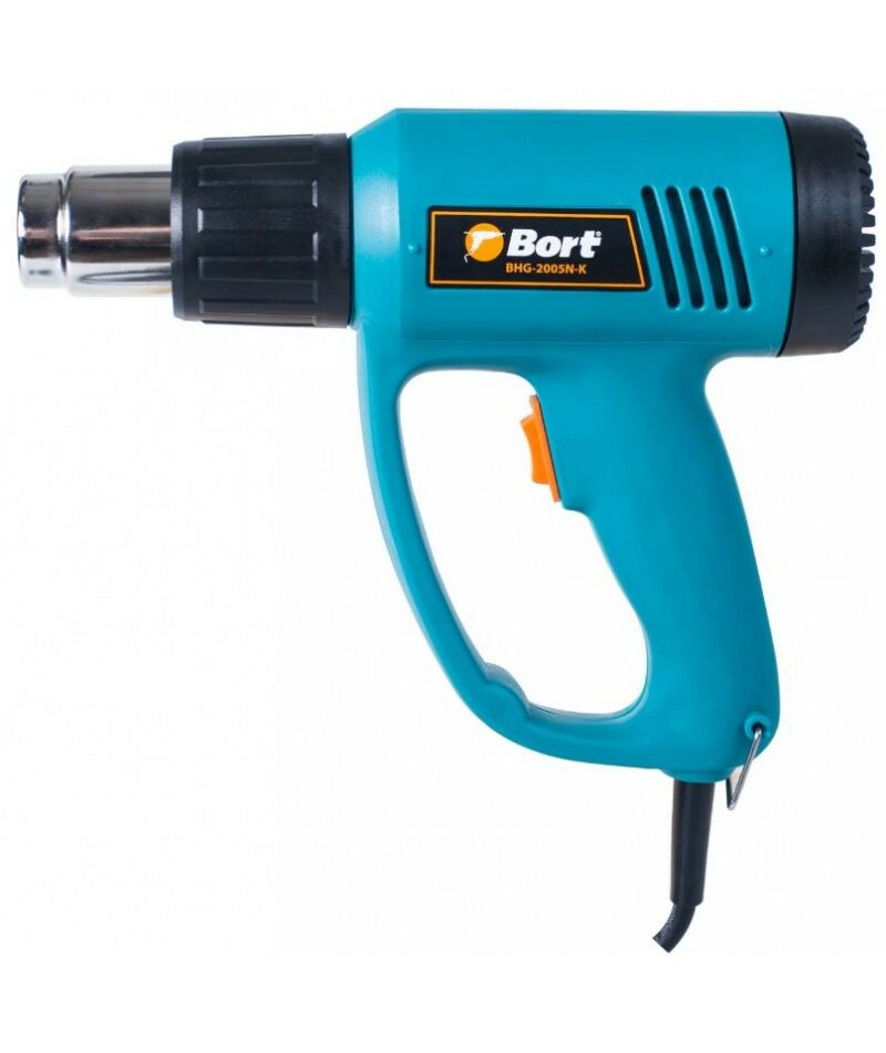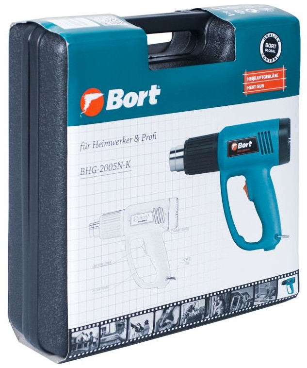 Технический фен BORT BHG-2005N-K подходит для обработки горячим воздухом различных поверхностей, для снятия лакокрасочных покрытий, для пайки и многого другого. Действительно, сфера применения технического фена так велика, что его значение в строительных работах очень сложно переоценить. Мощности фена хватает для любых профессиональных работ. Имеется два режима: поток 300 л/мин при 350 градусах и поток 500 л/мин при 550 градусах. В комплекте вместе с феном идут 4 насадки. Инструмент также можно поставить на поверхность соплом вверх, что позволяет облегчить работу в некоторых ситуациях. При выборе технического фена важно обратить внимание на рукоятку: открытая или закрытая. Фен с рукояткой открытого типа имеет меньшие габариты, однако закрытая рукоятка защищает руку рабочего от горячего потока воздуха и брызг расплавленного материала. Данная модель имеет закрытую рукоятку.
