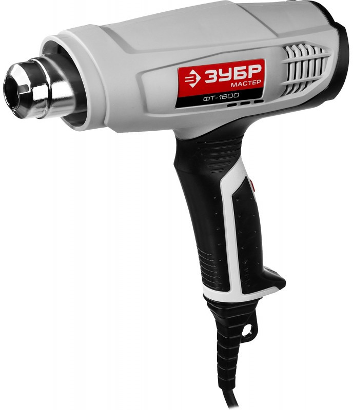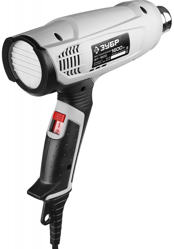 Фен технический (строительный) Зубр ФТ-1600 насадки 3 шт, 2 режима: 350град/ 350л/мин, 550град/ 550л/мин, коробка, 1600Вт
