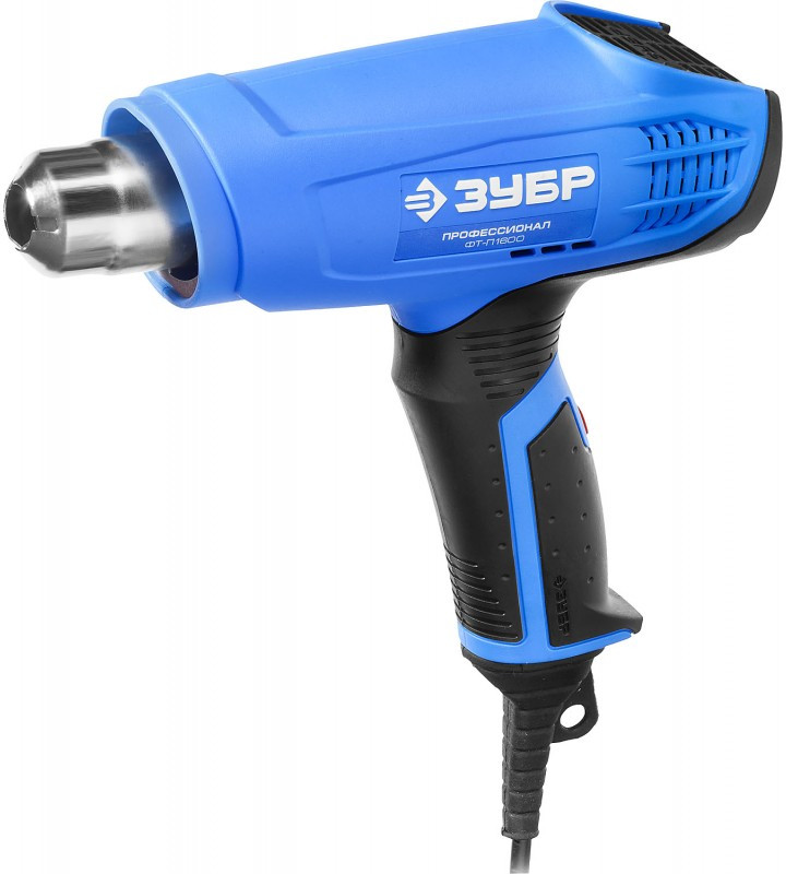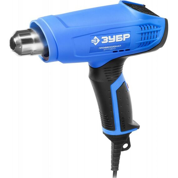 Фен технический (строительный) Зубр ФТ-П1600 Профессионал керамический изолятор, 2 режима: 350град/ 350л/мин, 550град/ 550л/мин, насадки, 1600Вт