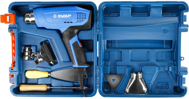 Фен технический Зубр ФТ-П1800 К Профессионал керамический изолятор, электронная регулировка температуры, 2 режима: 80-550град, 350/550л/мин, кейс, 1800Вт