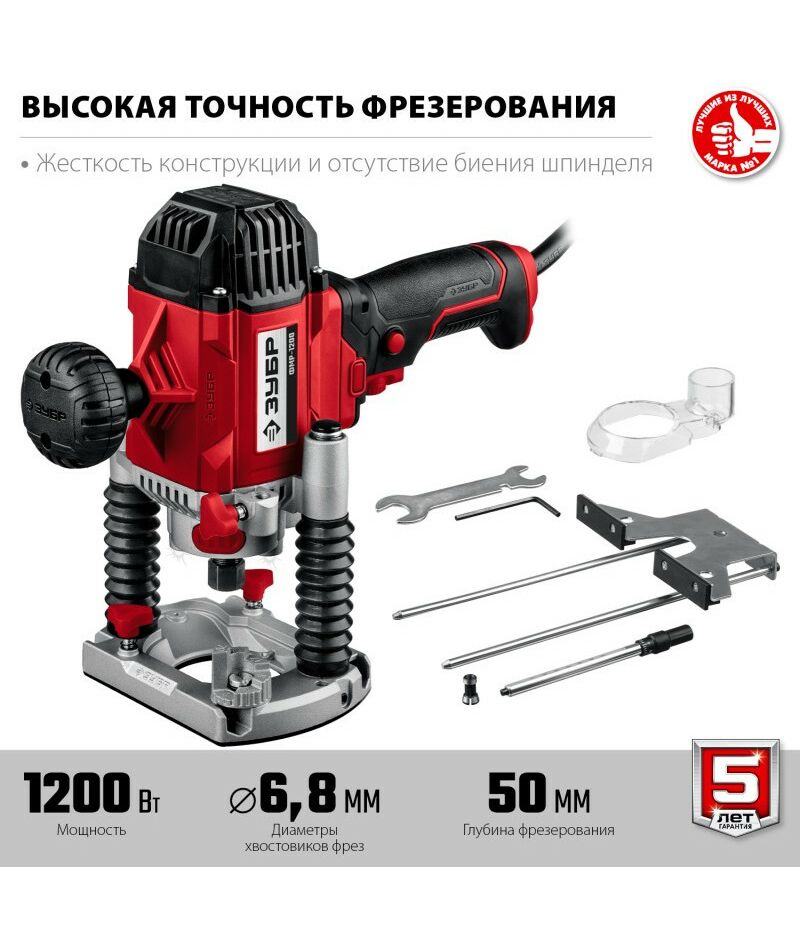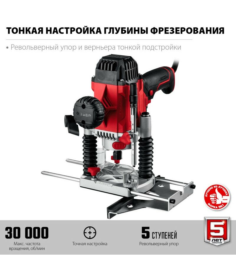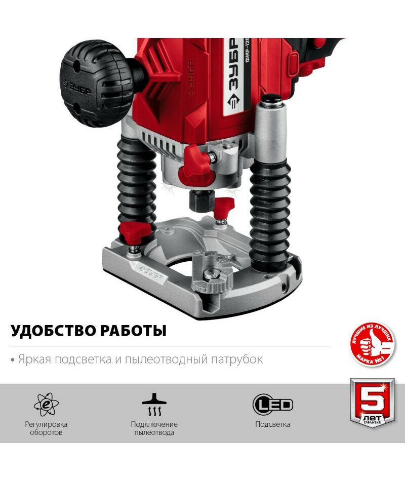 - Фрезер ЗУБР – многофункциональное изделие для различных видов фрезерования (продольного, фигурного, по шаблону, по радиусу). Компактный и производительный инструмент с удобной эргономикой. Повышенная точность оперирования позволяет выполнять наиболее тонкие работы. Яркая подсветка места фрезерования способствует удобству в работе