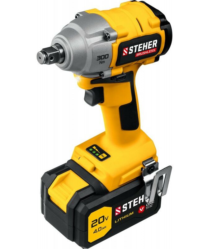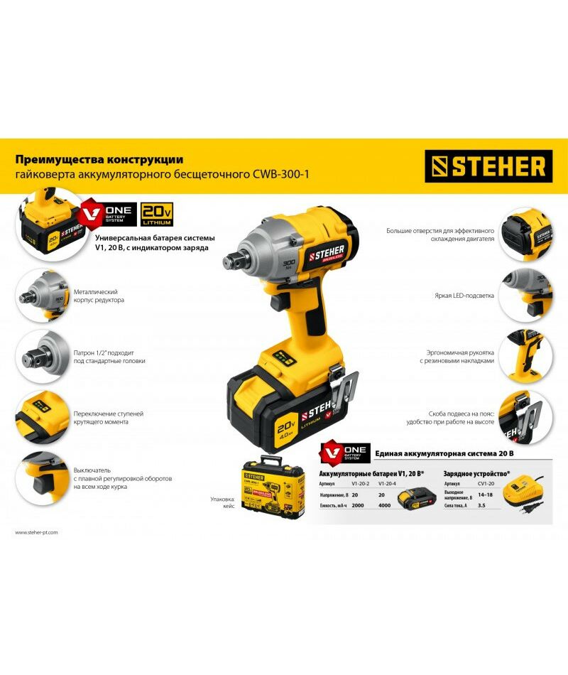 бесщёточный гайковерт STEHER CWB-300-1 20В, 1 АКБ (4Ач), в кейсе