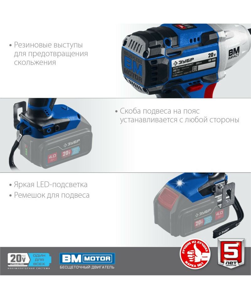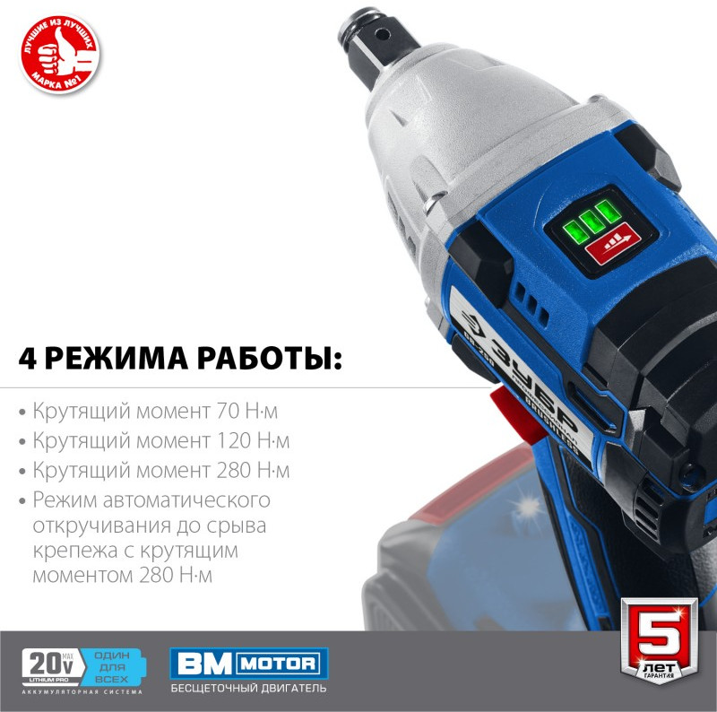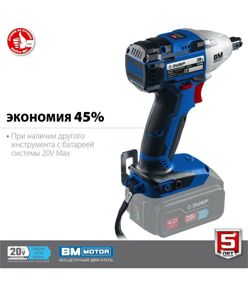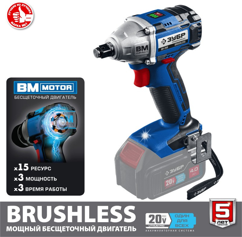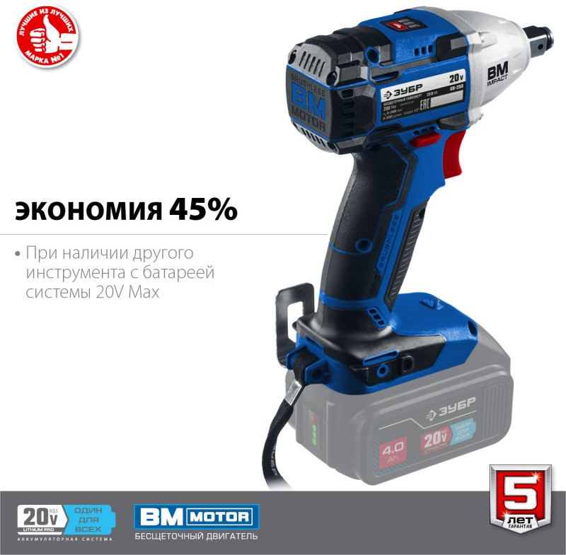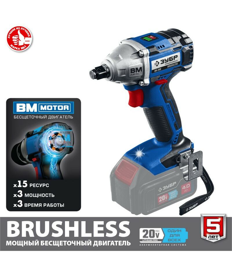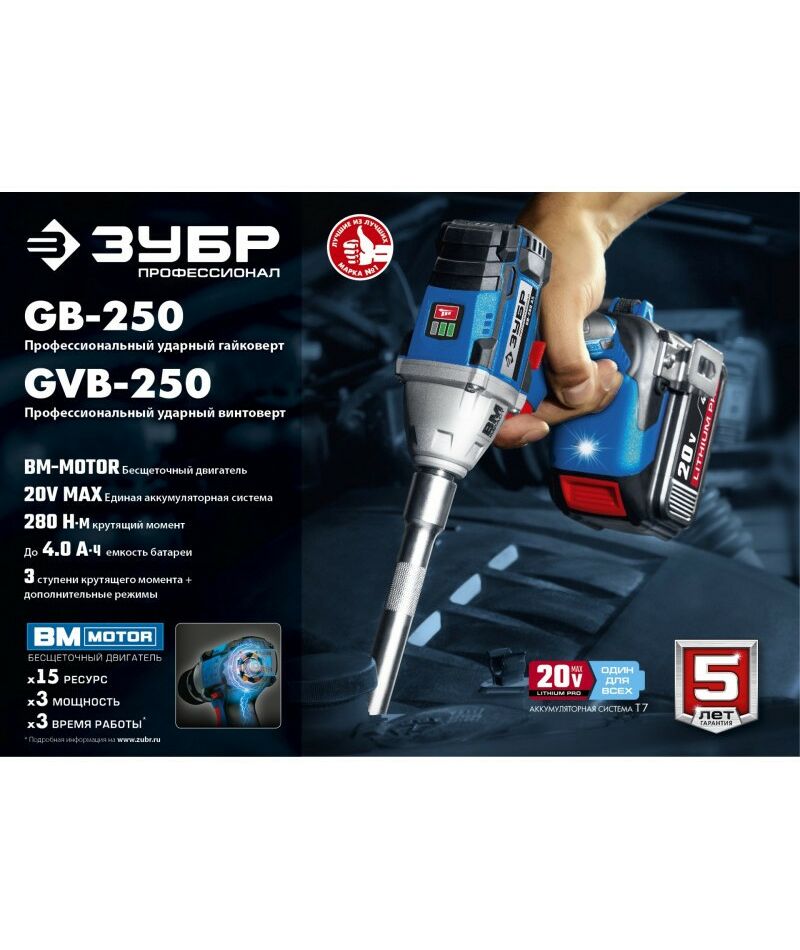 Бесщеточный гайковерт Зубр Профессионал GB-250 20В, без АКБ, в коробке