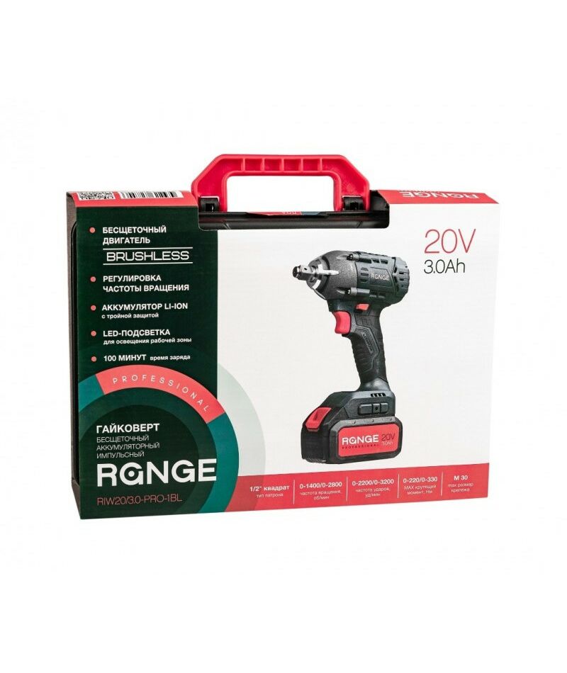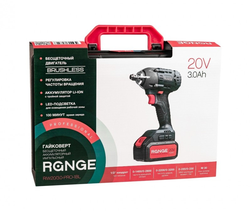 - Бесщеточный аккумуляторный импульсный гайковерт Range RIW20/3.0‑PRO‑1BL подходит для дома, на дачи и гаража. Используется для отворачивания крепежа, при сборке, разборке металлических конструкций, снятии колес автомобиля