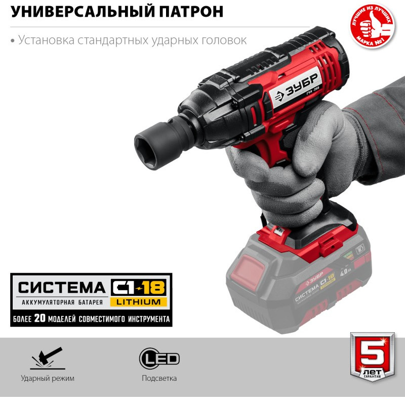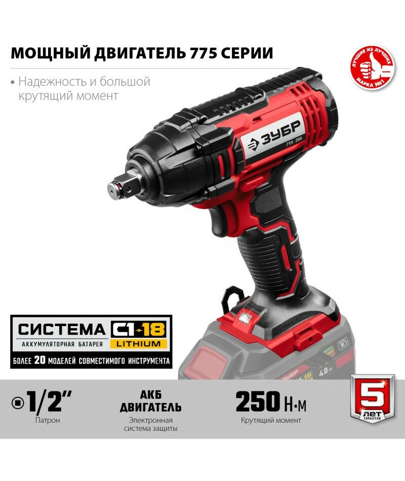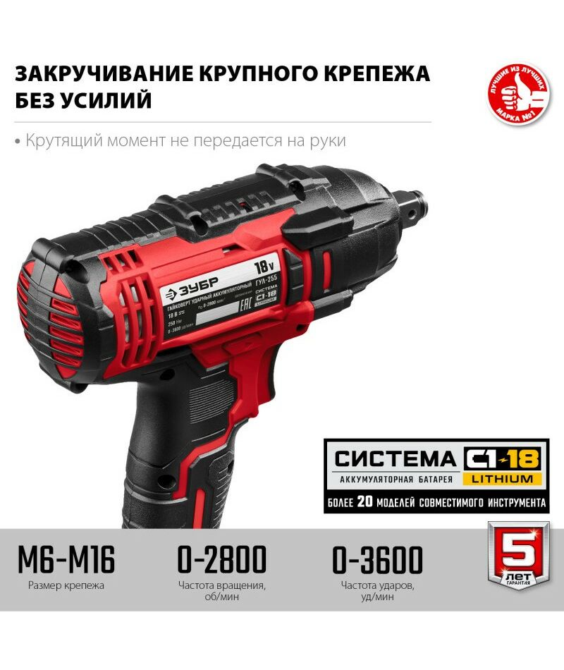 Гайковерт ударный Зубр ГУЛ-255 18В, без АКБ, в коробке