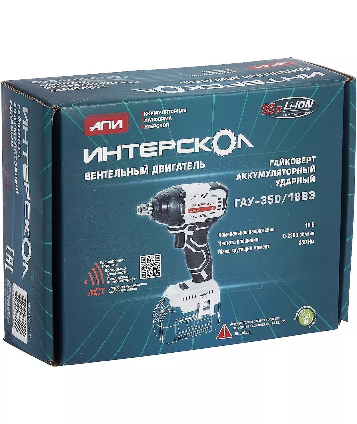 Аккумуляторный бесщет.ударный гайковерт Интерскол ГАУ-350/18ВЭ Li-ion АПИ картон, без аккум. и ЗУ [643.1.0.70]
