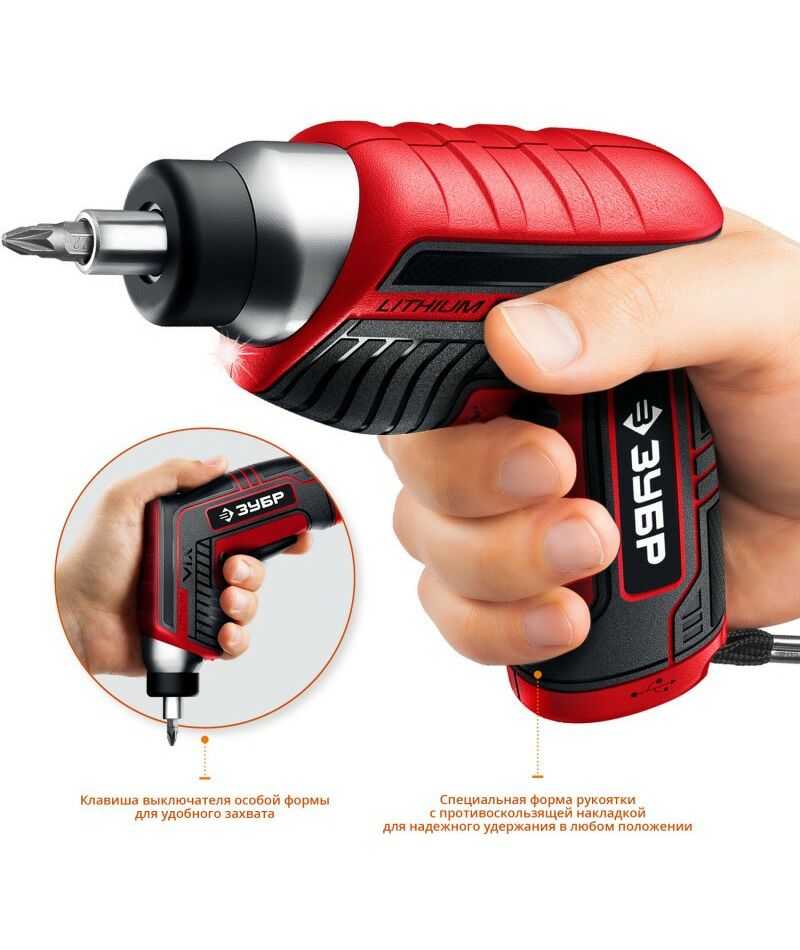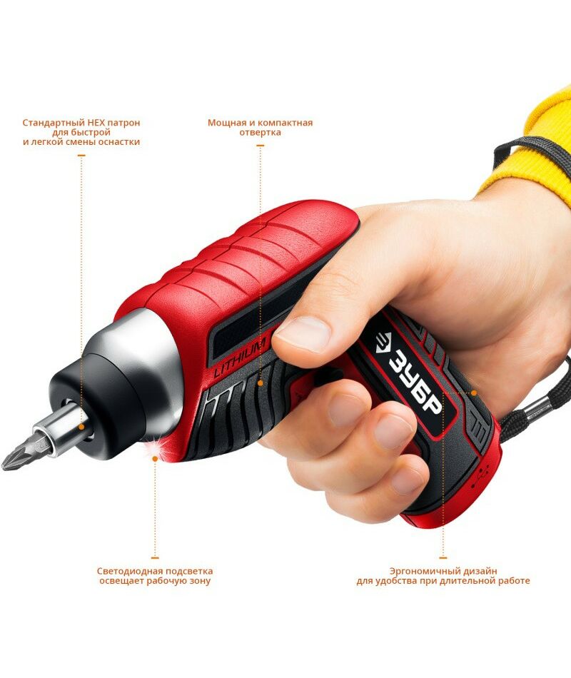 Отвертка аккумуляторная Зубр ЗО-Е-3.6 Ли ViX 3.6 В, в коробке с 10 битами