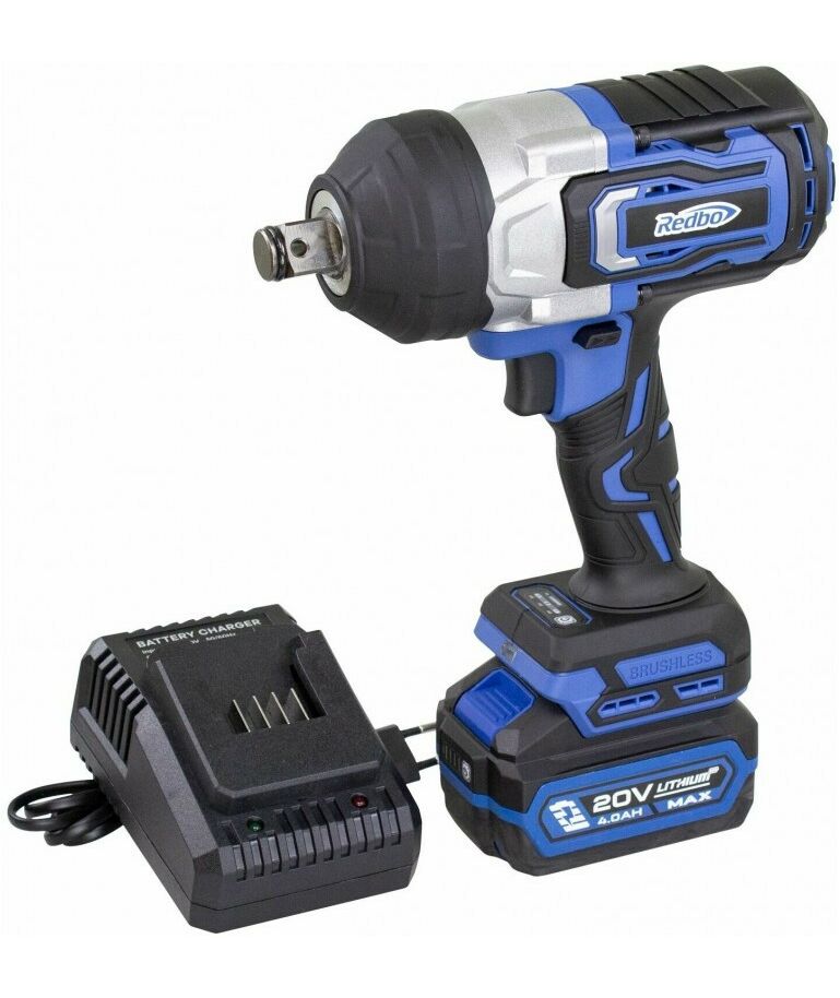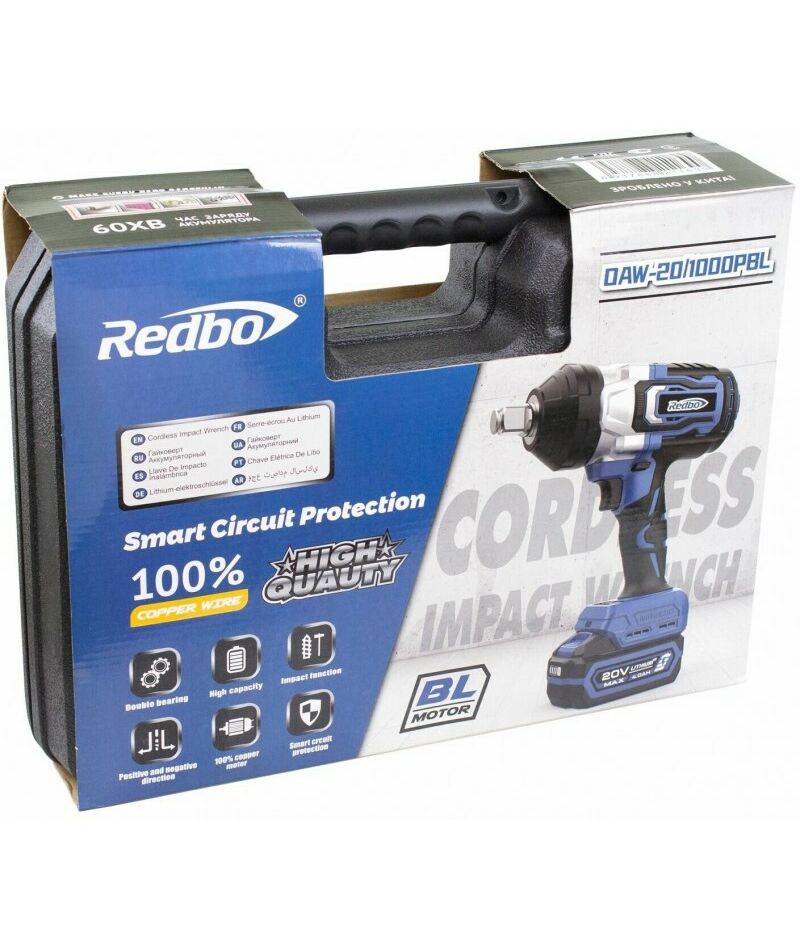 Гайковерт аккумуляторный ударный REDBO OAW-20/1000PBL Li-ion 20В, 1000Нм, 1900 об/мин, 3/4", 1х4Ач, 5кг, кейс, б/щет [202020300025]