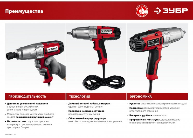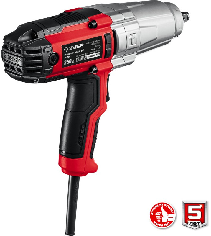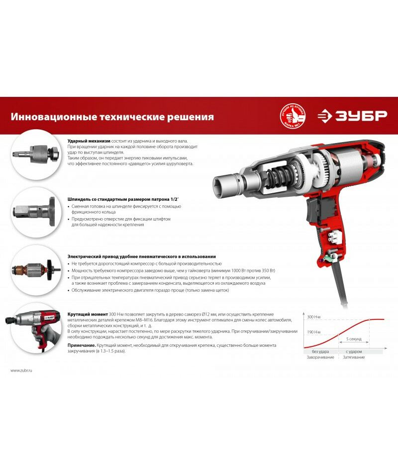 - Гайковерт ″ЗУБР″ - мощное изделие для заворачивания/отворачивания крепежа. Огромный крутящий момент, не ограниченный зарядом батареи, и надежная конструкция позволяют использовать его для самых тяжелых работ в любой области