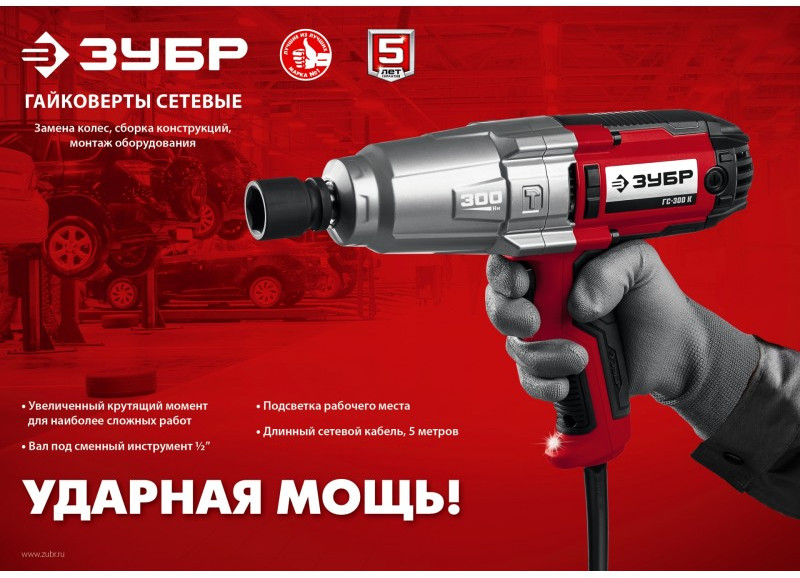 Гайковерт ударный сетевой Зубр ГС-300 300 Нм, 1/2"