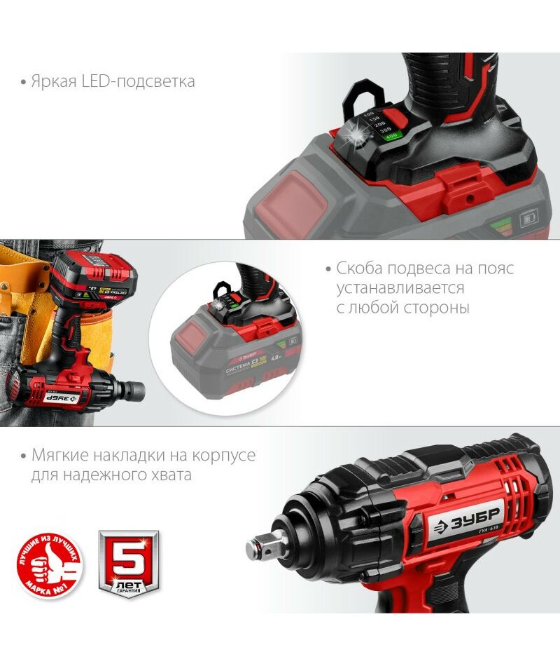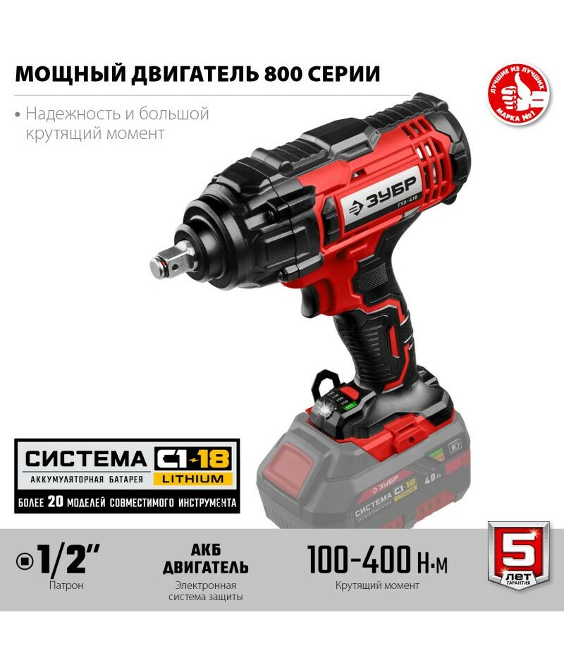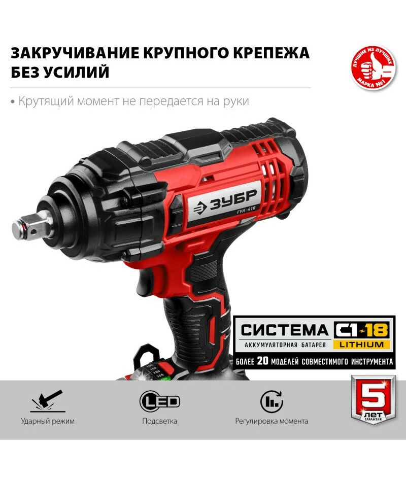 Гайковерт ударный Зубр ГУЛ-410 18В, без АКБ, в коробке
