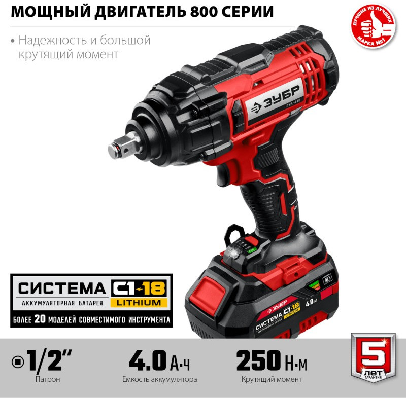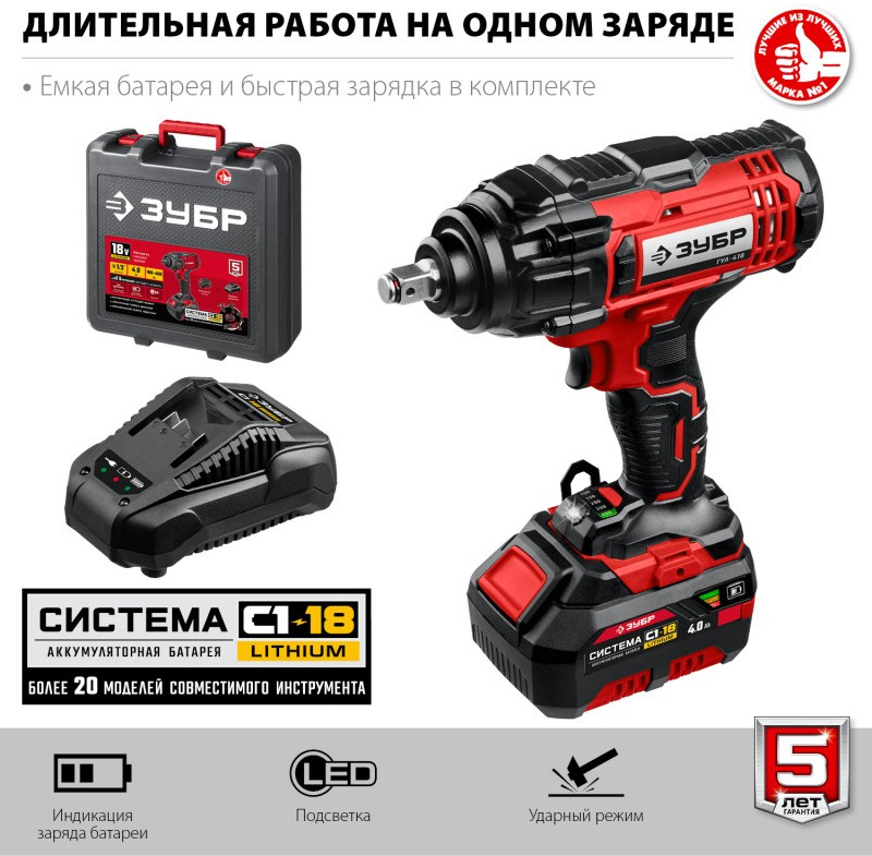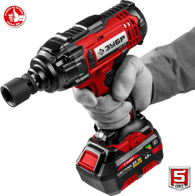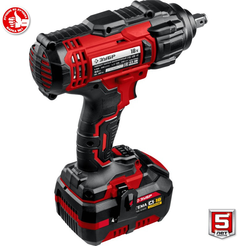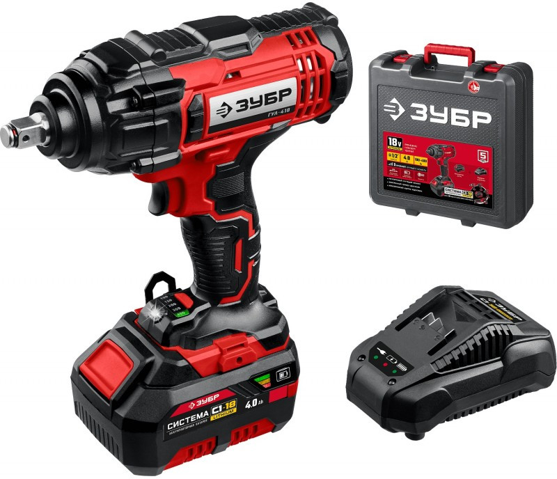 Гайковерт ударный Зубр ГУЛ-410-41 18В, 1 АКБ (4Ач), в кейсе