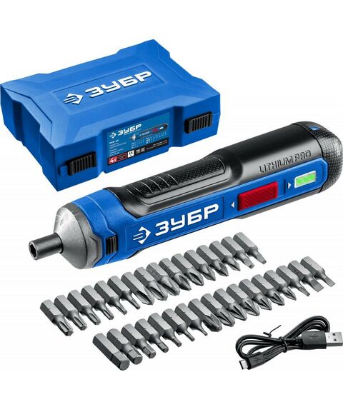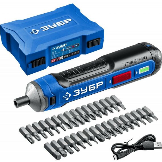 Отвертка аккумуляторная Зубр Профессионал PSD-4S 4 Vmax, в кейсе с набором 33 бит [PSD-4S]