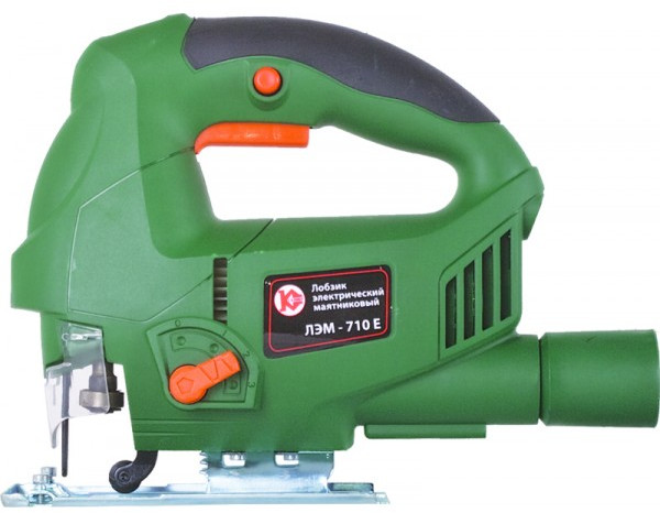 Лобзик Калибр ЛЭМ-710Е с двигателем мощностью 710 Вт. Максимальная толщина пропила составляет 80 мм.
