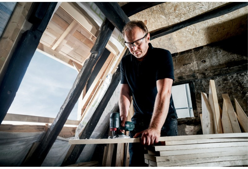 - Точный распил материалов в соответствии с их свойствами за счет выбора числа ходов, маятникового хода и низкого ведения пильного полотна с пружинной опорой
