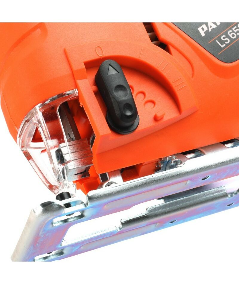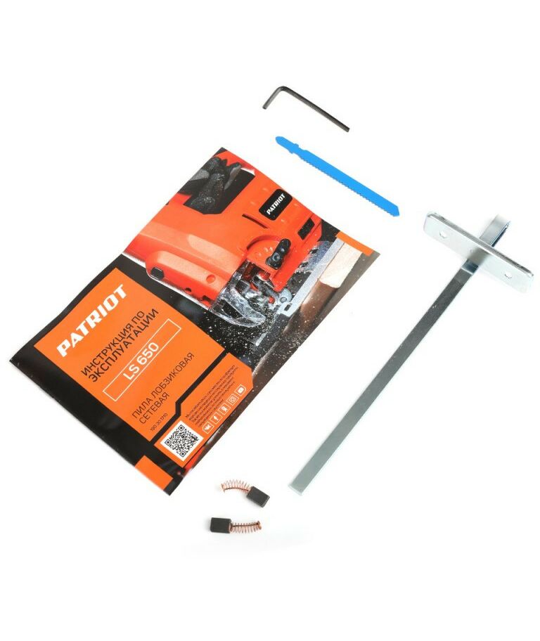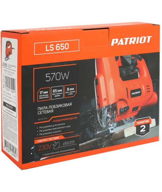 - Лобзик PATRIOT LS 650, мощность 570 Вт, макс толщина дерева 65мм, 5 поз. маятниковый ход, регулировка скорости, быстрая смена пилки, направляющая, литая стальная станина, цветная коробка