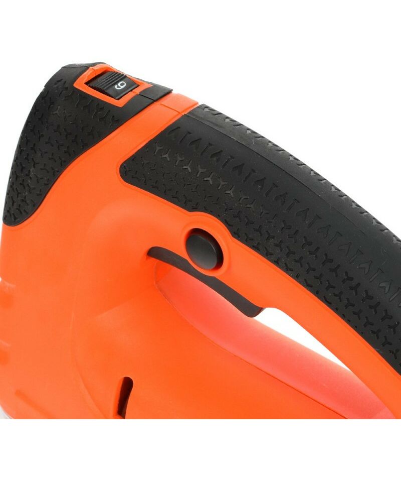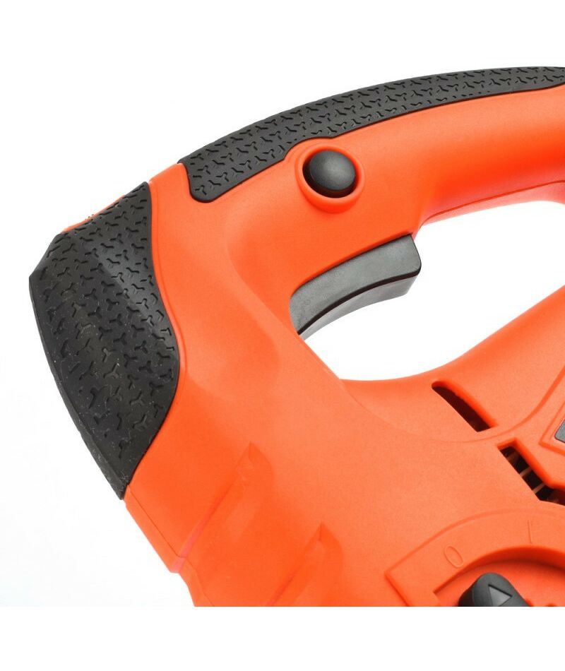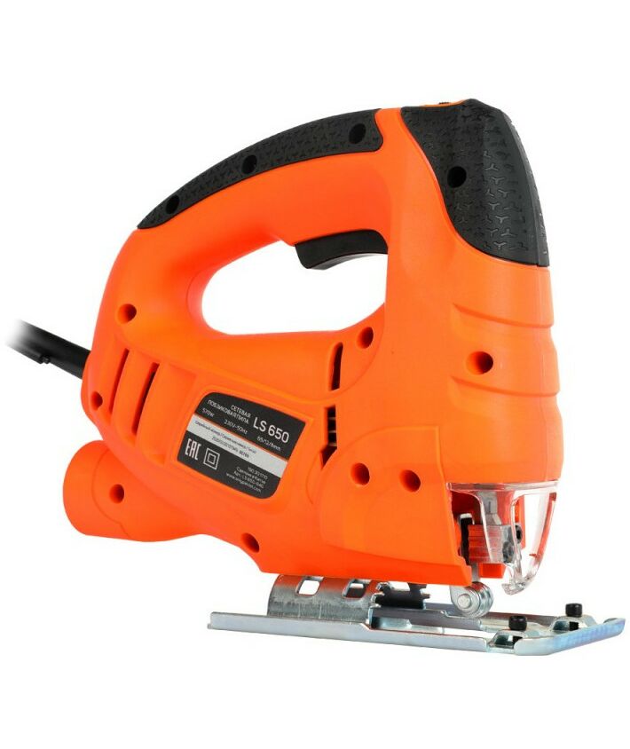 - В конструкции лобзика предусмотрен прозрачный защитный экран для обзора рабочей зоны, что создает