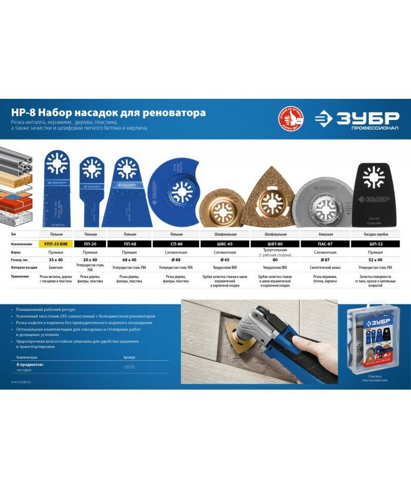 Набор насадок для реноватора Зубр Профессионал НР-8 8 предметов [15575]