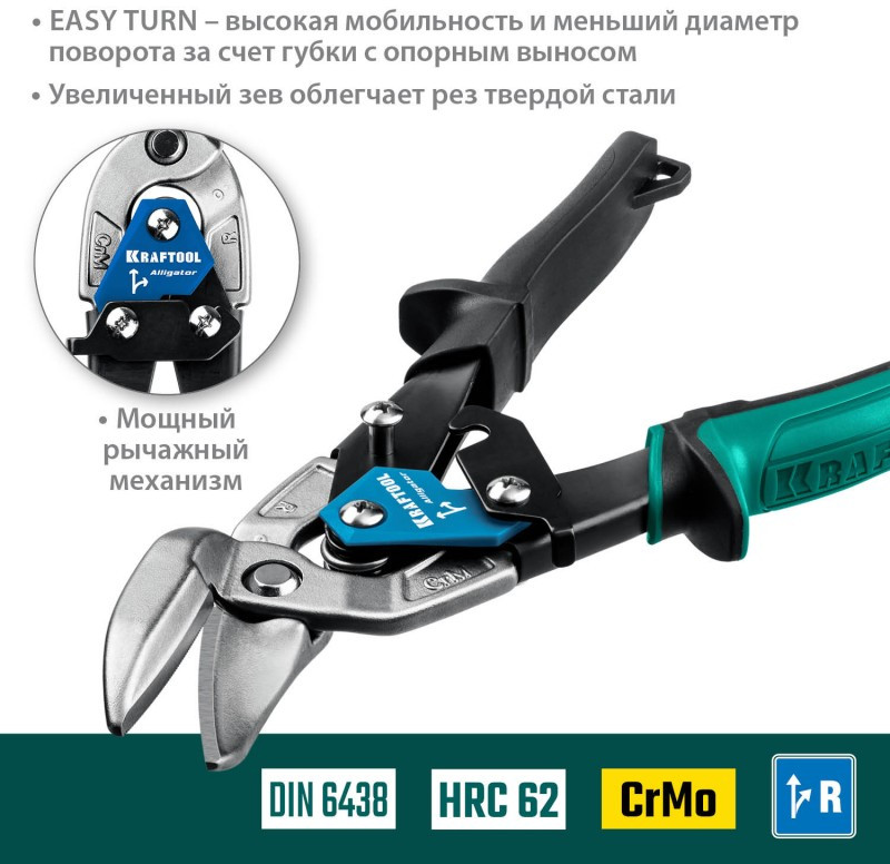 Профессиональные ножницы KRAFTOOL ALLIGATOR, изготовленные из хромомолибденовой стали обладают высокой твердостью режущих кромок и рычажным механизмом