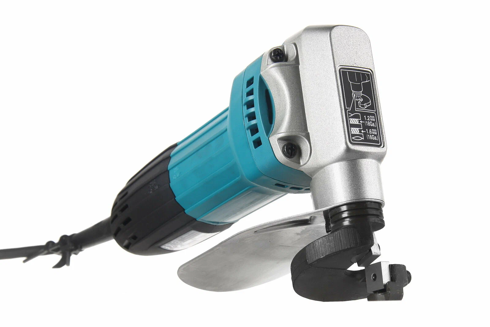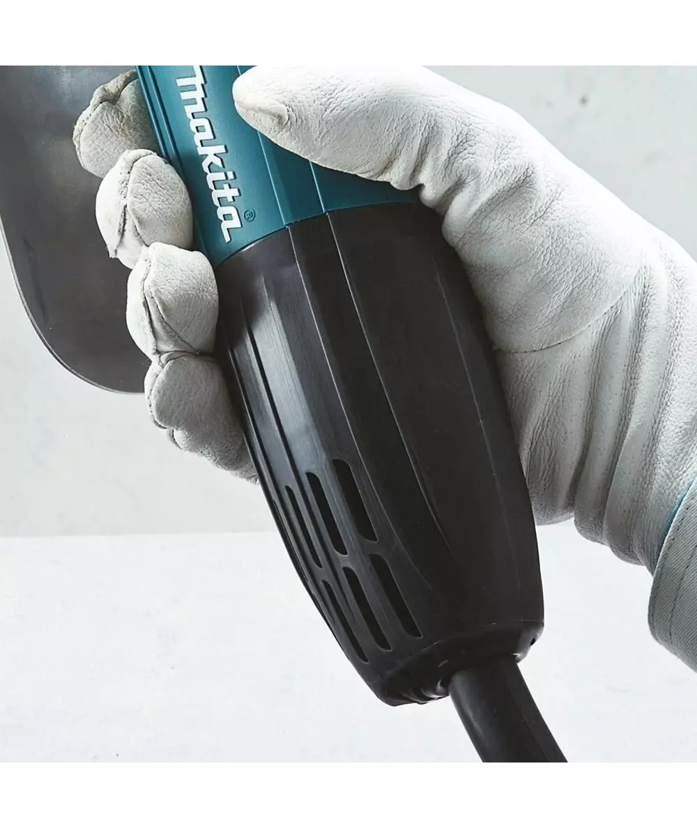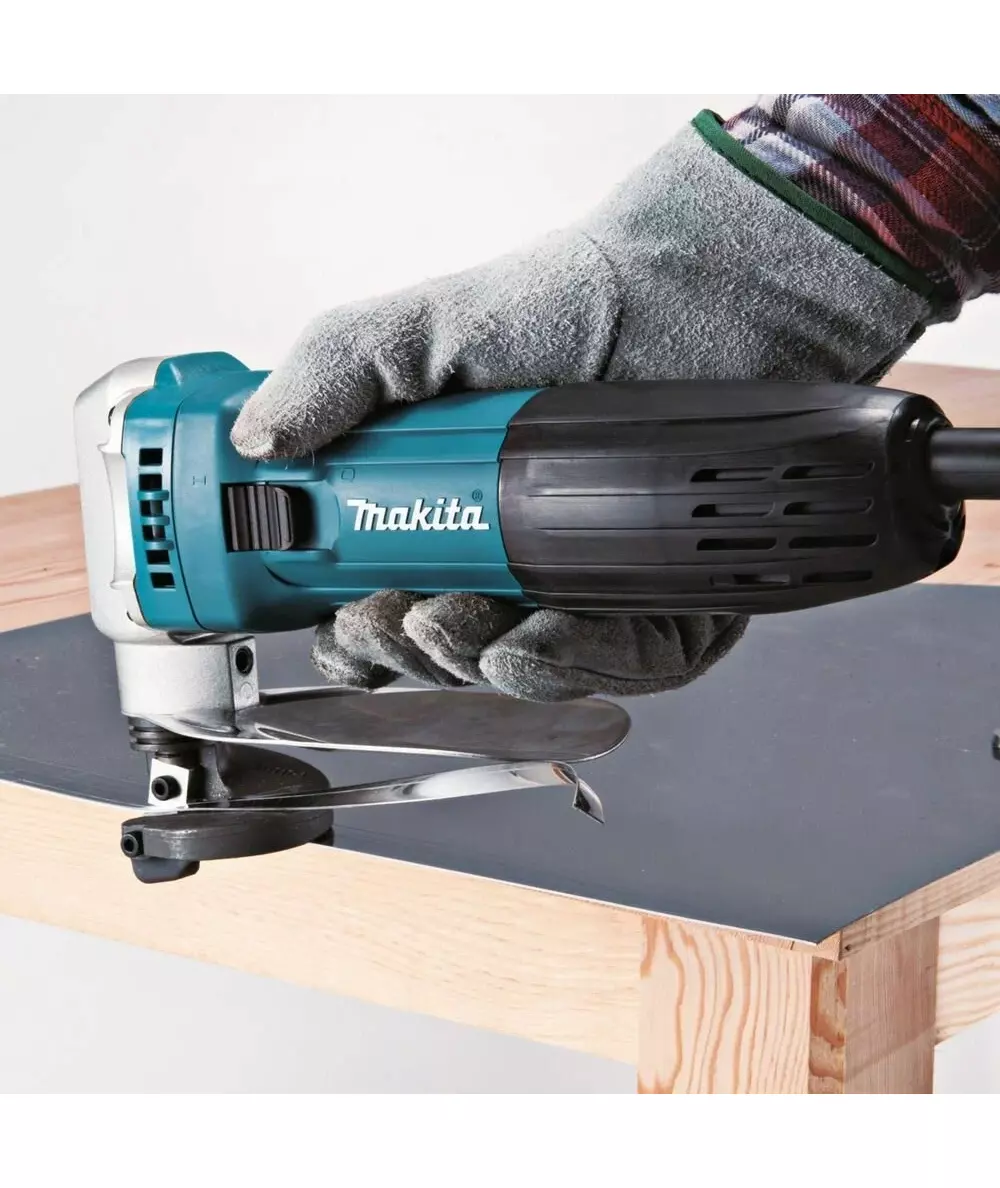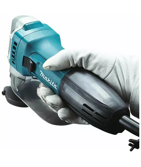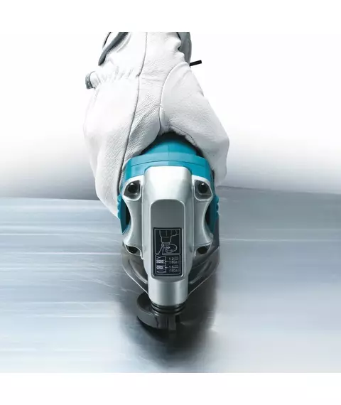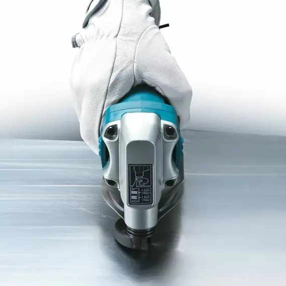 - Особенности: нижнее ограничение для защиты рук пользователя, блокирующий выключатель, встроенный измеритель толщины металла