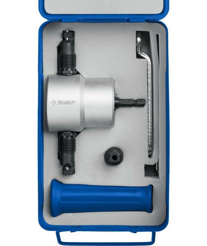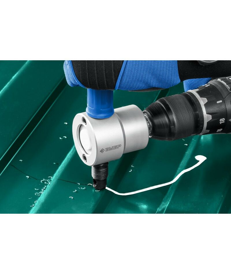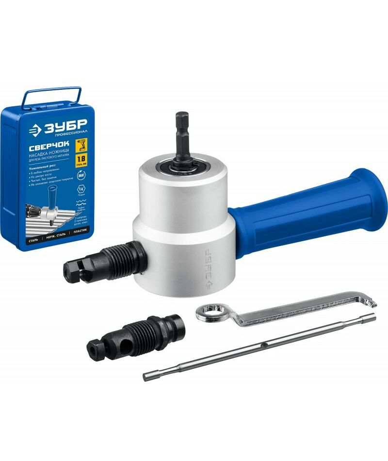 Насадка-ножницы Зубр СВЕРЧОК для реза листового металла + запчасти, в металл. кейсе [23294]
