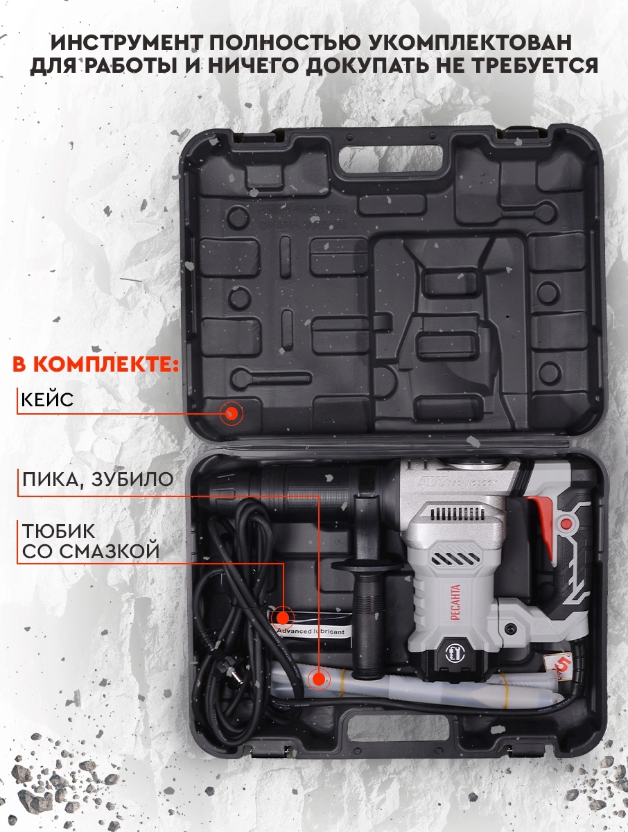 Отбойный молоток РЕСАНТА ОМ-1600М 1600 Вт, 25 Дж, SDS-MAX