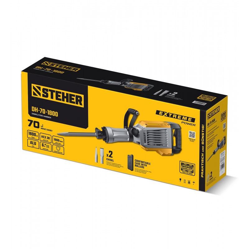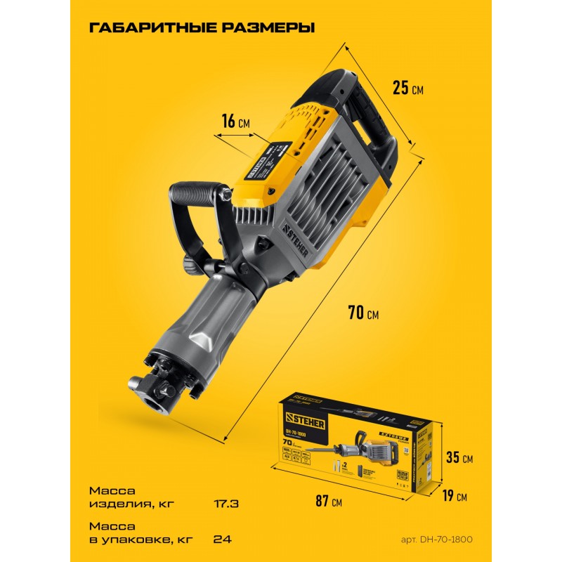 Бетонолом - отбойный молоток STEHER DH-70-1800 70 Дж, 1800 Вт, HEX-30