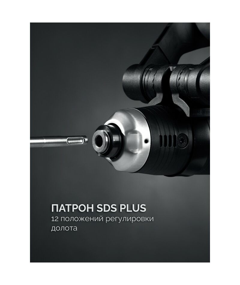- Патрон SDS-Plus для установки широкого спектра профессионального расходного инструмента и быстрой замены в процессе работы