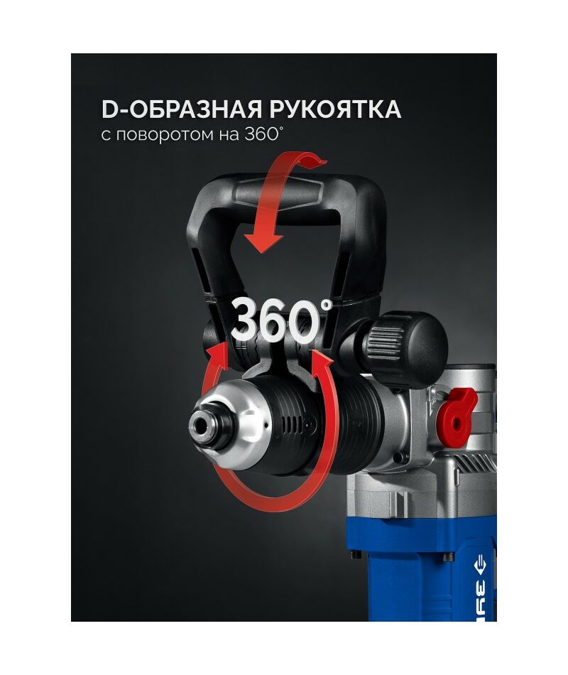 - Регулируемая на 360° и по углу наклона дополнительная D-образная рукоятка обеспечивает удобный и надежный хват в любом положении изделия